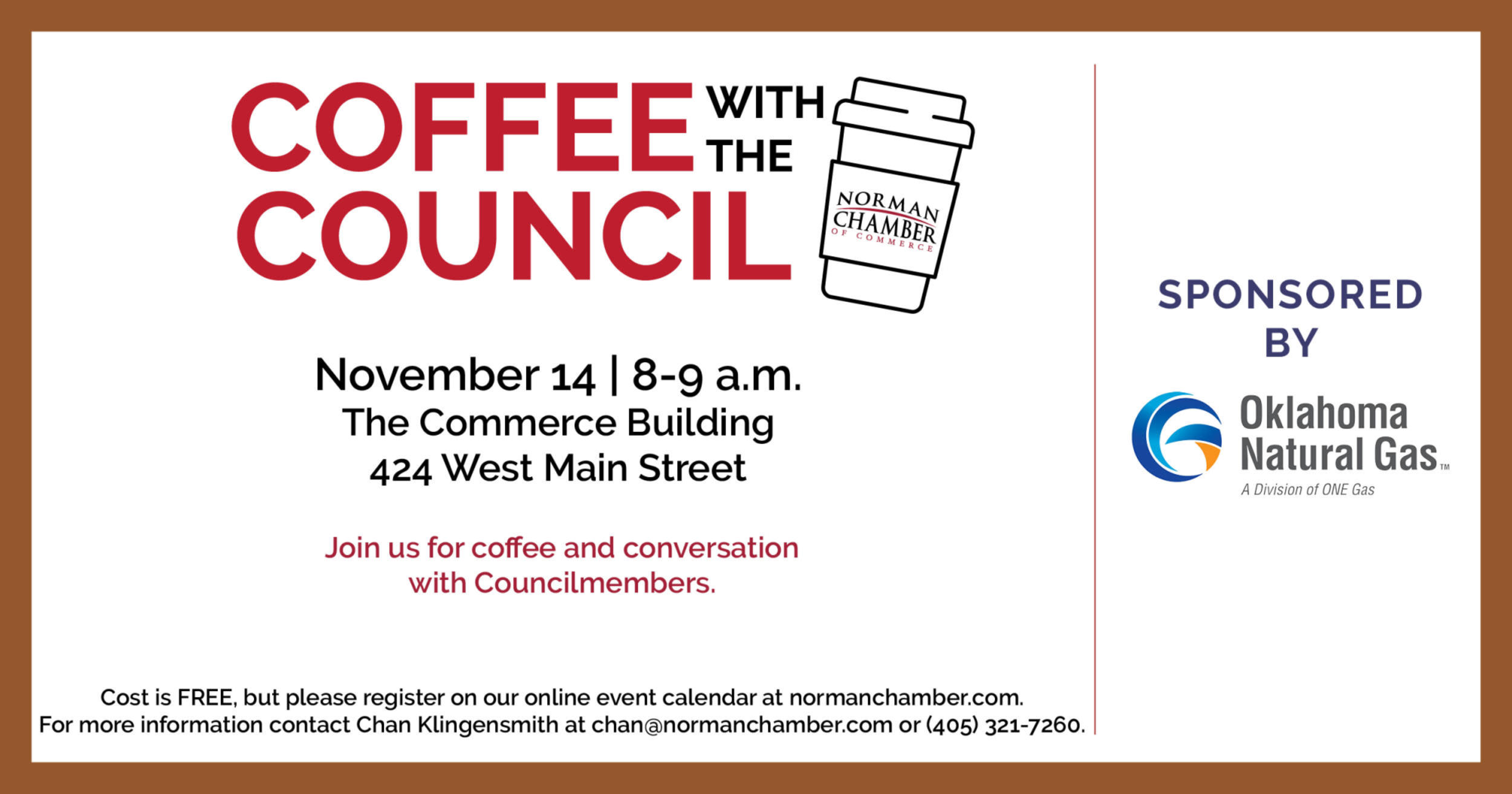 URL:https://normanchamberofcommerce.growthzoneapp.com/chambercalendar/Details/coffee-with-the-council-1081768?sourceTypeId=Hub